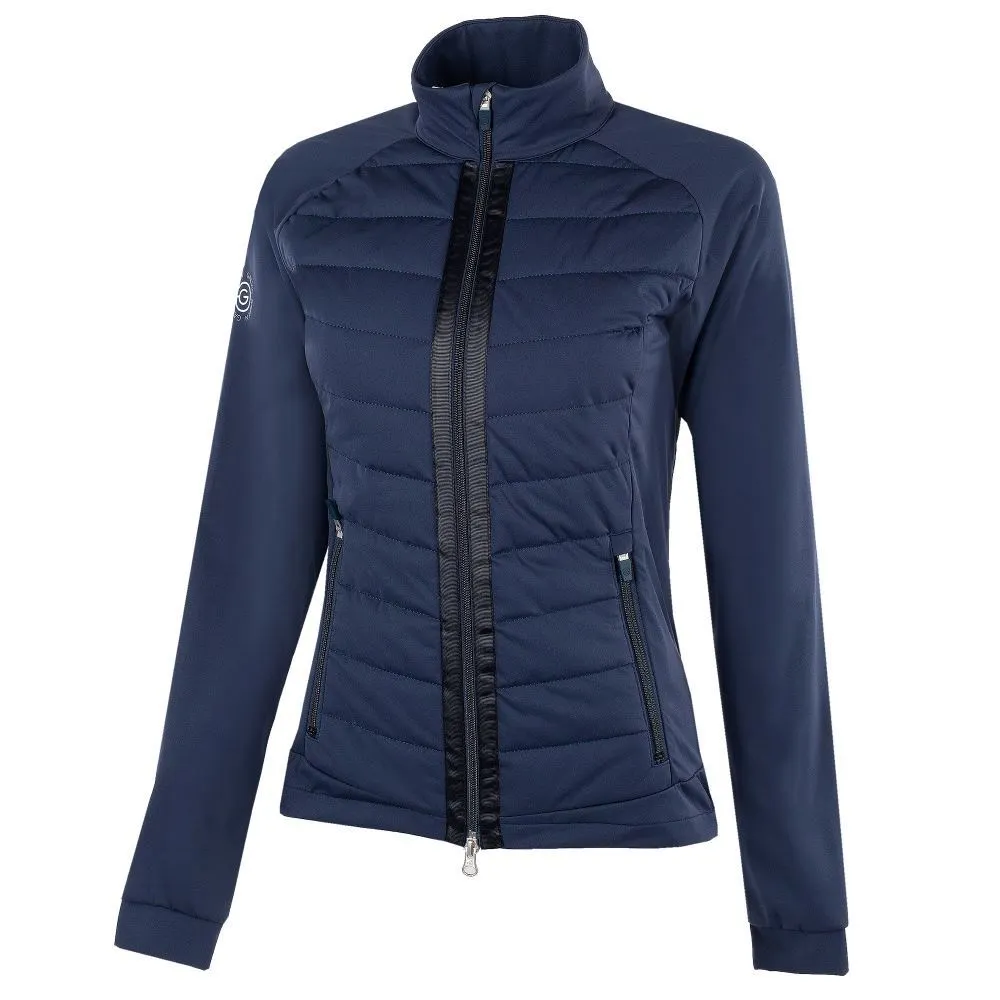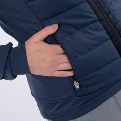 A full-zip stylish design details such as v-shaped padding on the chest and across the back in combination with soft stretchy windproof and water-repellent INTERFACE-1™ fabric and ribbed sleeve cuff.